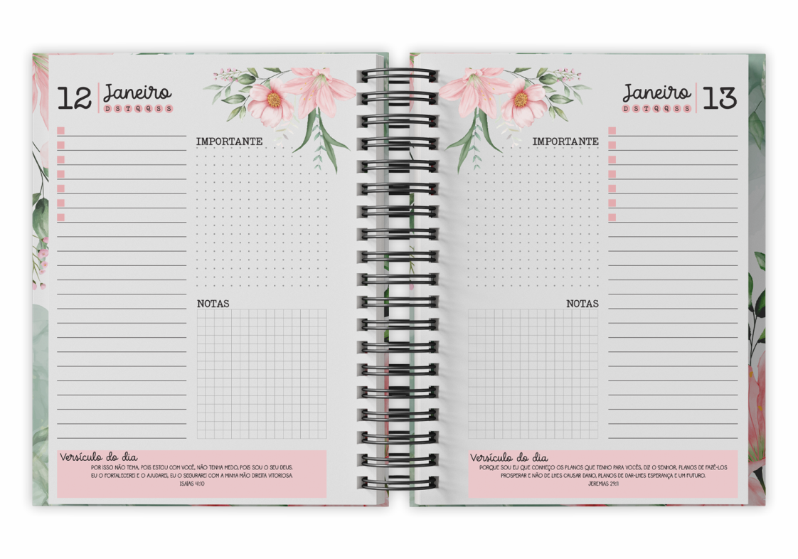 Miolo: Floral com verssículos em cada página